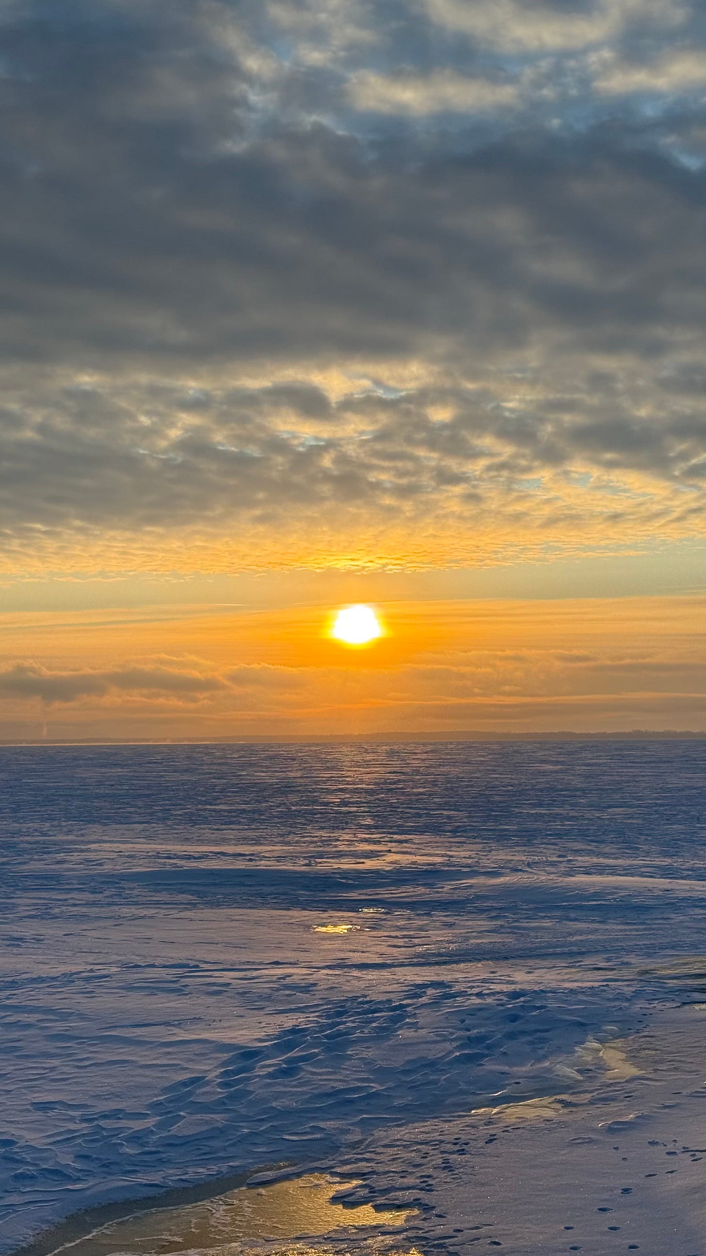 I had to warm up my car as the sun rose and the sky began to saturate. Being cold and having slept poorly, my mood was icy and angry and ready for movement. As I aimed my crusted car onto the gray and white street— the white snow and gray ice— the dilemma of my destiny weighed on me, and the affections of my life warmed the car. The carefree days of summer seemed like an improbable fictional fantasy. But when I began to see the sun like my child's head peeking out from memory, I felt peace. When I stepped onto the ice so solid beneath my feet, I knew my path was clear and that I would follow where it led. The ice would melt and I would float all the way to the sea.