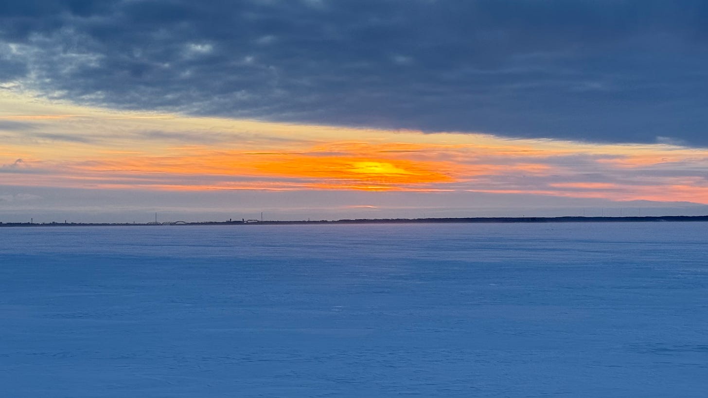 It’s true I’ve had many loose screws from the time I was a child, and I’ve skated thin ice over many dangerous depths with yard-sale skates—the price tag still stuck on: $2. And yet I’ve survived to become this pilgrim of the shadow cast by the rising sun across the frozen Saint Lawrence, I’ve lived to break through the ice and drift to the ocean. I woke up on a Greyhound bus gently careening over the Lake Pontchartrain causeway in the midst of a November storm in 1989 looking for Walker Percy. The bus itself had some screws loose, which was oddly comforting since its rattles made music with my own like a summer breeze makes music with that same bus arriving at the station.